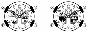 Для того, чтобы настроить Стрелки часов G-SHOCK должны использоваться четырьмя кнопками на корпусе.