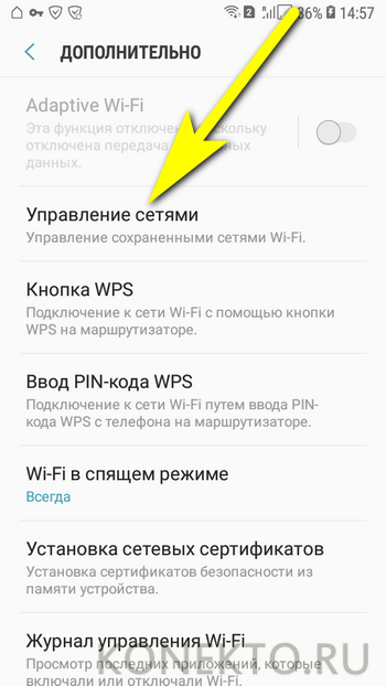 - В частности, здесь проще проверить качество сигнала, решить проблему автоматического доступа к сети (пока не будет изменен пароль на маршрутизаторе) или, если вы используете беспроводную точку подключения в Интернете, больше не «забывать» ее — тогда для подключения и настройки телефона в следующий раз нужно будет повторить код доступа.