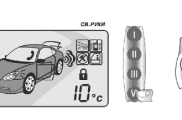 Для правильной активации автозапуска Из свойств температуры салона, в первую очередь, необходимо как включить Опция запрограммирована, активируйте режим запуска таймера (1-13 Далее необходимо перейти в режим программирования, нажав на соответствующую кнопку ❶ + ❶ брелка, после чего выполняются следующие операции: