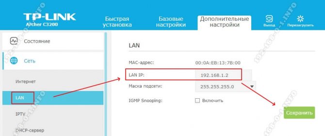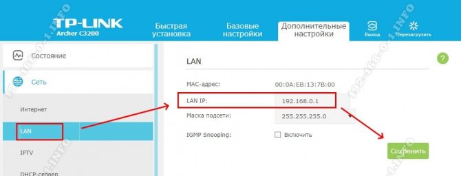 Адрес модема и маска остаются неизменными.