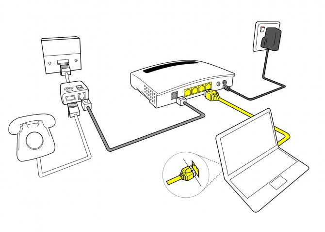 Для подключения оборудования необходим специальный кабель, коммутационный кабель и, возможно, адаптер для соединений. Комбинация маршрутизатора, модема и компьютера/ноутбука выполняется в два этапа: